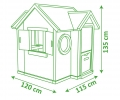Do domku pasuje dodatkowo: dzwonek do drzwi, drzwi pełne do domku, rynna z konewką, ogródek, kuchnia letnia oraz stolik piknikowy. Wysokość 135 cm,