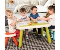 Zielony stolik z czterema nogami. Wygodna i stabilna konstrukcja, dzięki nogom wykonanym w technologii  blowmoulded. Duża przestrzeń stolika, aż 76 cm pozwala nawet 4 dzieci wspólnie się bawić na przykład rysując lub jeść przekąski.