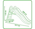 Wykonana w technologii blowmoulded - innowacyjna metoda, dzięki której zjeżdżalnia cechuje się większą wytrzymałością. Pomiędzy dwoma warstwami tworzywa sztucznego znajduje się poduszka powietrzna zwiększająca stabilność i trwałość produktu. Zjeżdżalnia ma wysokość 118 cm i zjaza długości 2 m. Dzieci będą spędzać na niej całe dnie, bawiąc się i śmiejąc!