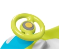 Wózek, który po demontażu staje sie jeździkiem. Zdejmowany daszek, duże miękkie koła, intuicyjny system kierowania, uchwyt na butelkę, metalowa rączka dla rodzica, ergonomiczne i wygodnie siedzenie, kierownica z pokrętłami i dźwiękowym klaksonem (3 dzwięki).
