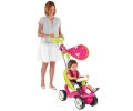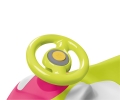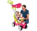 Wózek, który po demontażu staje sie jeździkiem. Zdejmowany daszek, duże miękkie koła, intuicyjny system kierowania, uchwyt na butelkę, metalowa rączka dla rodzica, ergonomiczne i wygodnie siedzenie, kierownica z pokrętłami i dźwiękowym klaksonem (3 dzwięki).
