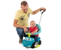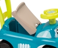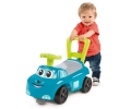 Jeździk z kierownicą, wygodnym siedzeniem ze schowkiem na drobiazgi, z oparciem - rączką do prowadzenia przez dziecko, z wypustkami uniemożliwiającymi wywrócenie się w przód i tył. Elektroniczny klakson