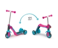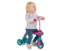Nowoczesny pojazd 2 w 1: rowerek biegowy i hulajnoga. Dla dzieci od 18 m-cy do 3 lat. Łatwy do przetransformowania bez użycia narzędzi, ergonomiczne kształty, ciche koła, metalowa konstrukcja, regulowana wysokość kierownicy (3 różne pozycje 52, 57 i 62 cm). Wspaniała zabawa, nauka balansowania i równowagi. Nowoczesne wzornictwo.