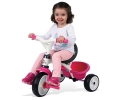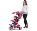 Z regulowaną rączką, blokadą kierownicy, pasami i pierścieniem bezpieczeństwa, komfortowym i ergonomicznym siedziskiem z zagłówkiem, blokadą wolnego koła, schowkiem na drobiazgi i torbą oraz daszkiem przeciwsłonecznym. Kołem. Ciche koła