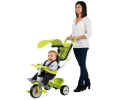 Z regulowaną rączką, blokadą kierownicy, pasami i pierścieniem bezpieczeństwa, komfortowym i ergonomicznym siedziskiem z zagłówkiem, blokadą wolnego koła, schowkiem na drobiazgi i torbą oraz daszkiem przeciwsłonecznym. Ciche koła