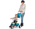 Z regulowaną rączką, blokadą kierownicy, pasami i pierścieniem bezpieczeństwa ergonomicznym siedziskiem, blokadą wolnego koła oraz schowkiem na drobiazgi i torbą