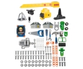 W zestawie 92 akcesoria, w tym samochód do składania za pomocą narzędzi, zintegrowany dźwig z ruchomym podnośnikiem, smartfon, liczne narzędzia: młotek, obcęgi, śrubokręt, piła, klucze, nakrętki, gwoździe, itp.