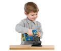 Zestaw do skręcania, rozkręcania, wiercenia i piłowania. W zestawie: 3 wymienne nakładki: wkrętło (3 szt.), wyrzynarka, piła rotacyjna (ruch w przód i w tył). Funkcja Try Me.