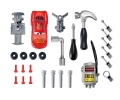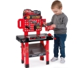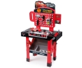 Stół warsztatowy z narzędziami i samochodem Zygzak MCQueen. W zestawie 21 akcesoriów, w tym śrubokręt, młotek, klucz nasadowy, śrubki, nakrętki itp. Samochód Zygzak jest rozkładany, a stół posiada obrotowy panel z platformą na samochód.